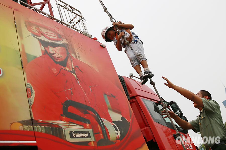 Beijing Fire Department and Beijing Academy of Learning Science co-hosted a summer camp of security and self-rescue for elementary school students. On July 21, 2015, over 40 pupils went to the fire department in Yizhuang observing and learning about fire safety.