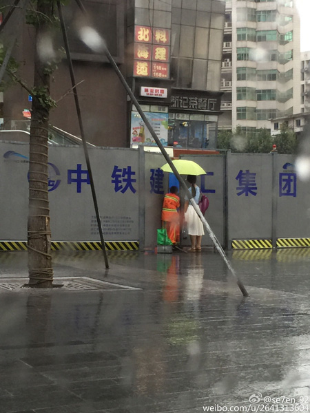 "I was in the Yinshi square when the rain storm started. There is a shelter 200 meters away from me. When I ran to shelter, I found a girl chased me and held umbrella for me. She accompanied me all the way till I was in the shelter. Her dress was wet for covering me," Xu recalled.