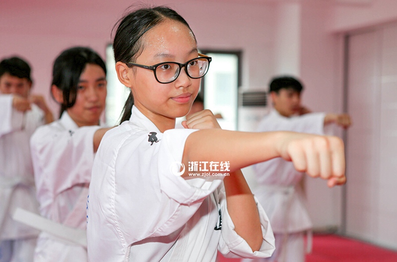 | Martial arts classes have become popular among female students in recent years. According to the owner of a martial hall in Hangzhou, east China’s Zhejiang province, nearly 30 percent of learners are women. And in summer vacation, female might take more than half of all learners. (Photo/ zjol.com.cn) |