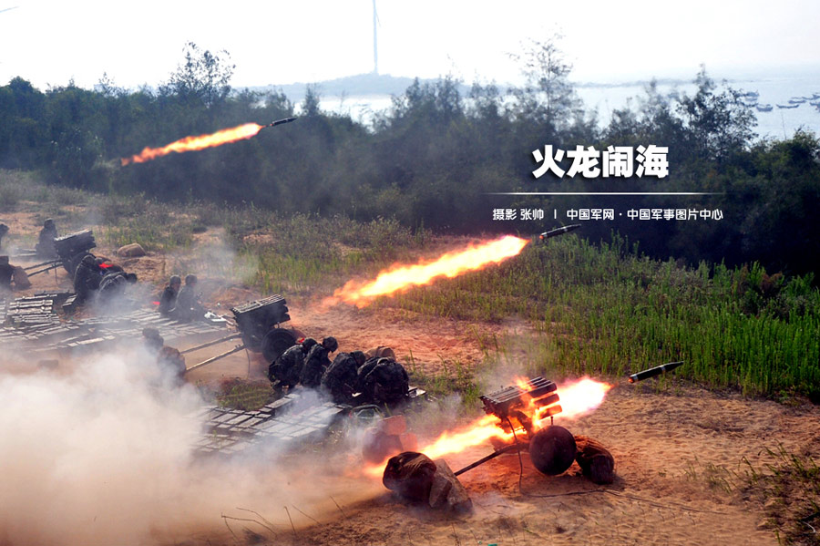 A PLA artillery regiment conducts a live fire drill on July 18, 2015, shooting at marine targets. (Photo/www.81.cn)
