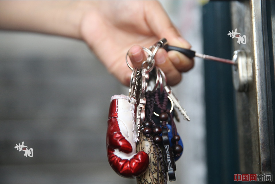 The mini boxing glove on Li Xia’s key chain. (China.com.cn/Fu Cun)