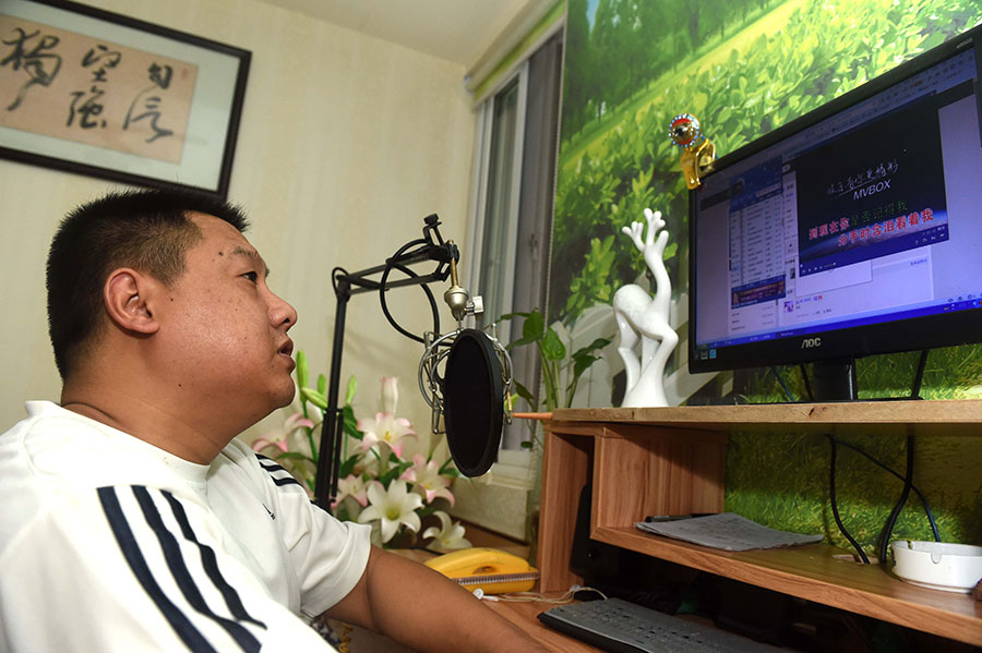 Qian Jun sings songs on the Internet. (Xinhua/Xie Chen)