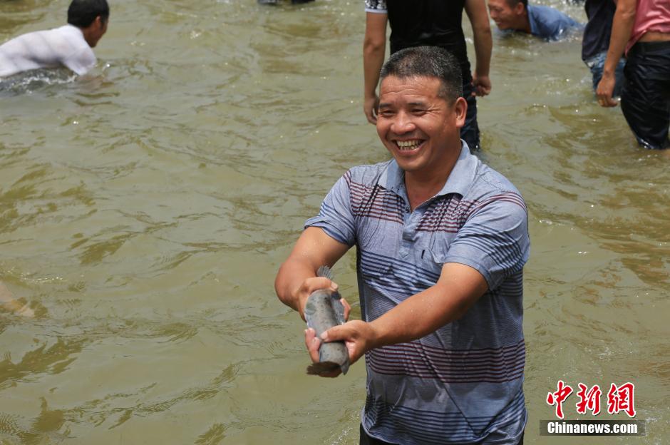Miao people catch fish in a river to celebrate the traditional Fish-catching Festival on July 21 in Rong'an county of south China's Guangxi. (Photo/CNS)