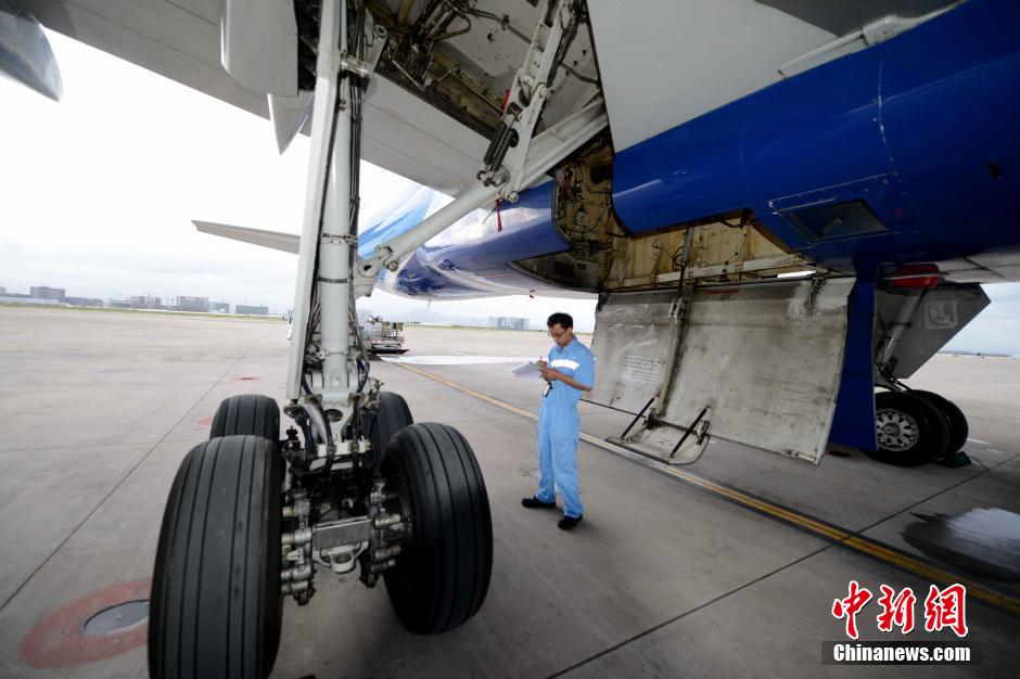 A maintenance engineers check a plane. (CNS/Wang Dongming)