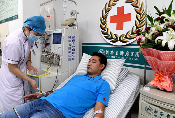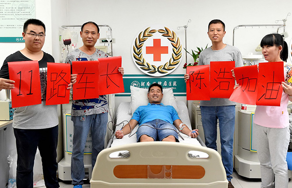 Chen Hao, a 32-years-old bus driver, donated blood stem cells for a leukemia patient in Henan Tumor Hospital on July 22, becoming the 498th blood stem cells donor in the province.