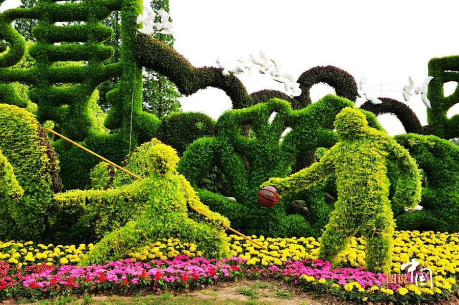 The dimensional “harmonious rhythm” green landscape in Nanjing, Jiangsu Province, was built for 2013 Asian Youth Games. (Photo / CCTV)