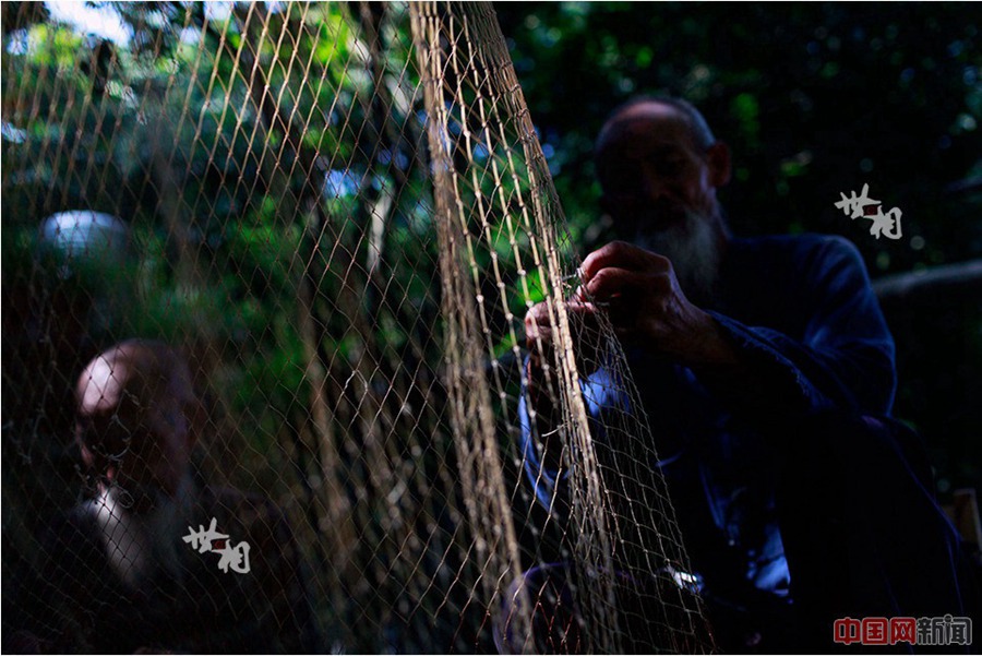 One of them mends the fishing net. (China.com.cn/Liu Jiaoqing)