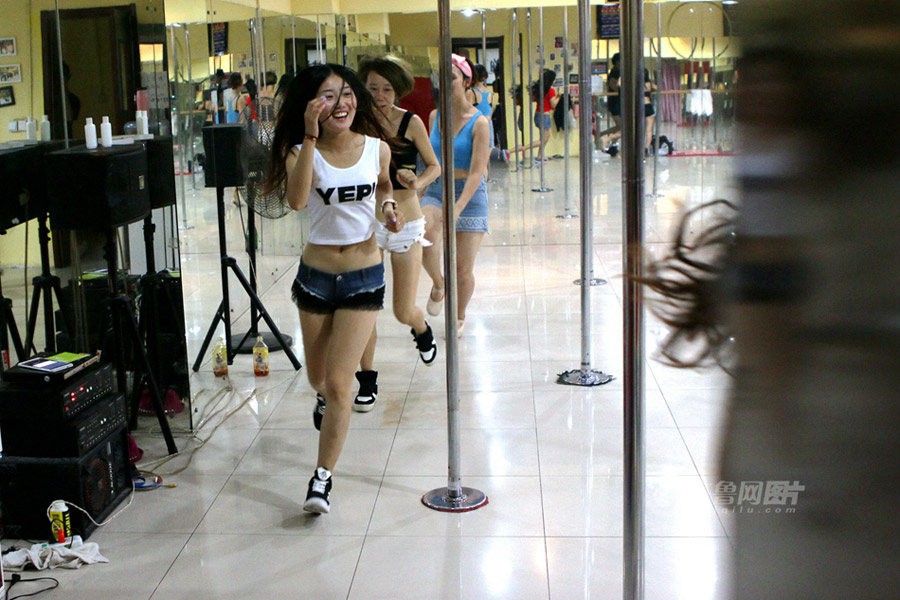 | In a pole dancing school in east China’s Shandong province, young girls train hard. They are charming dancers on the stage, but tough girls in the training hall. Pole dance has become popular in China, and more and more young people have begun to learn it. (Photo/iqilu.com) |