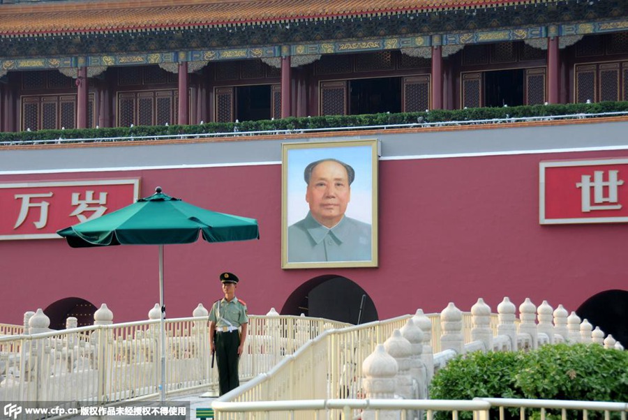 After two weeks of maintenance and refurbishment, the Tiananmen Gate is now in a brand new state for the arrival of the V Day parade on Sept. 3. (Photo/ People’s Daily Online)