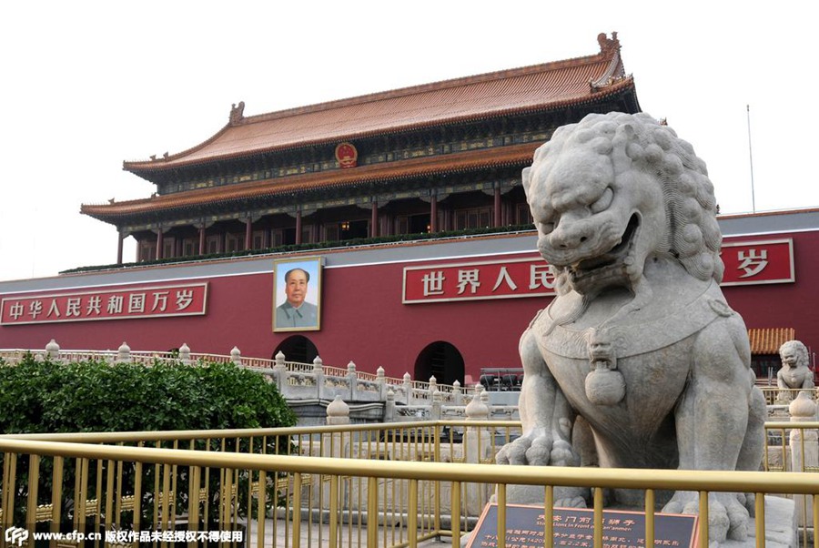 After two weeks of maintenance and refurbishment, the Tiananmen Gate is now in a brand new state for the arrival of the V Day parade on Sept. 3. (Photo/ People’s Daily Online)