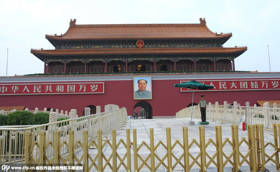 After two weeks of maintenance and refurbishment, the Tiananmen Gate is now in a brand new state for the arrival of the V Day parade on Sept. 3. (Photo/ People’s Daily Online)