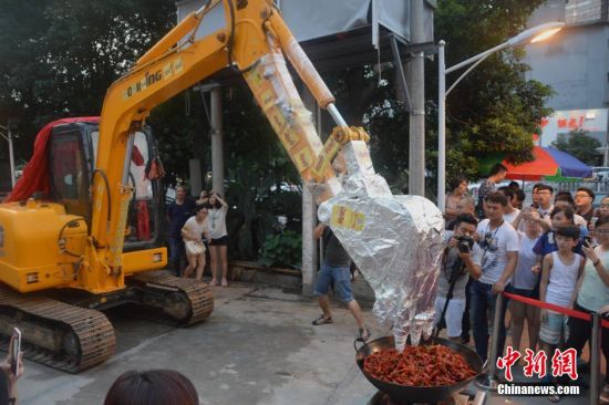The one-month Crawfish Festival closes in Changsha on July 25, 2015. A 2.5 meter high excavator
