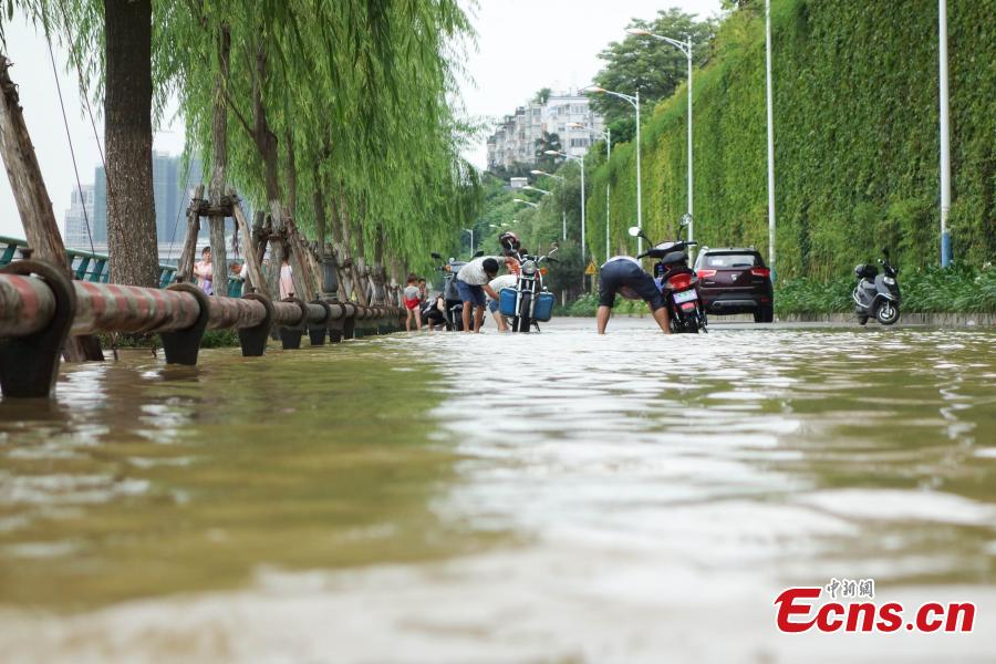 Low-lying areas along a river flood after rainstorms in Liuzhou city, Southwest China’s Guangxi Zhuang autonomous region, July 28, 2015. Rainstorms and floods have affected 262,700 people in Guangxi and 12,700 have been evacuated to safety, a local source says. (Photo: China News Service/Huang Weiming)