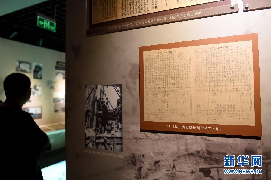People visit an exhibition held in the Museum of the War of Chinese People's Resistance Against Japanese Aggression on July 26. The exhibition displays how Japanese troops forced more than 10 million Chinese workers to engage in building road, mining, military engineering from 1931 to 1945. (Photo/Xinhua)