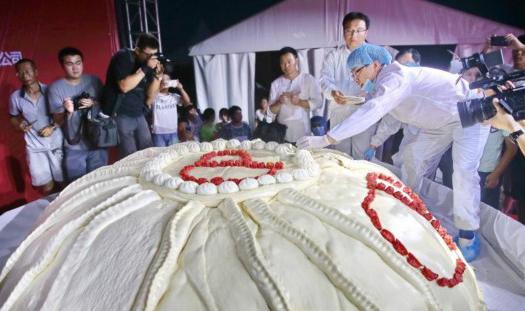 A giant steamed stuffed bun set Guinness World Records for both its weight and size after it was cooked at a food festival in Qinhuangdao, north China's Hebei province on July 24, 2015.The bun is 2.57 meters in diameter and 1,367 kilograms in weight. “It consisted of 500 kilograms of stuffing and 867 kilograms of flour," said Zhao Xin, one of the 25-member cooking team. They spent about 13 hours making the bun for the festival.
