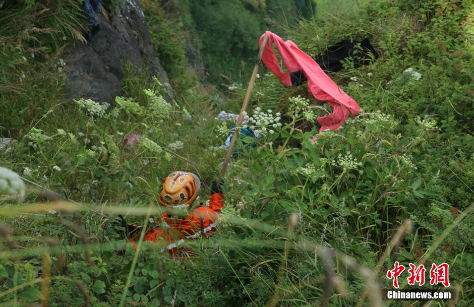 Volunteers pick up garbage under the cliff. (Chinanews/Liu Zhongjun)