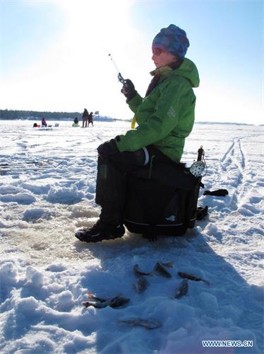 A child takes part in an ice fishing contest. (Xinhua/Zhang Xuan)
