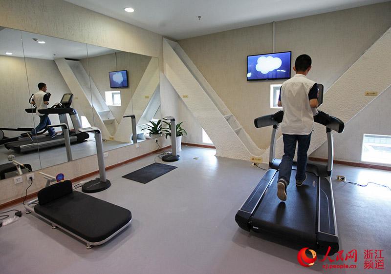 A man practices at the exercise rehabilitation zone in Ningbo Cloud Hospital. China's first cloud hospital "Ningbo Cloud Hospital" opened offline on July 26, 2015. (people.cn/Zhang Yongtao)