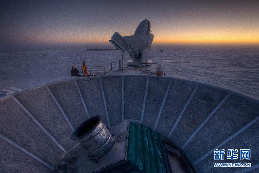 The photo of BICEP2 Telescope (front) and South Pole Telescope was taken on March 17, 2014 in Antarctic continent. (Photo by Xinhua / FCP)