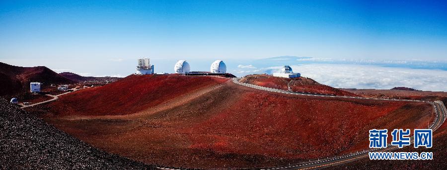 There are 12 astronomical telescopes on Mauna Kea volcano, of which the largest is 10-meter-diameter Keck telescope (two in the middle).The photo was taken on Dec. 19, 2014 on the peak of Mauna Kea in Hawaii. (Photo by Zhu Wei / Xinhua)