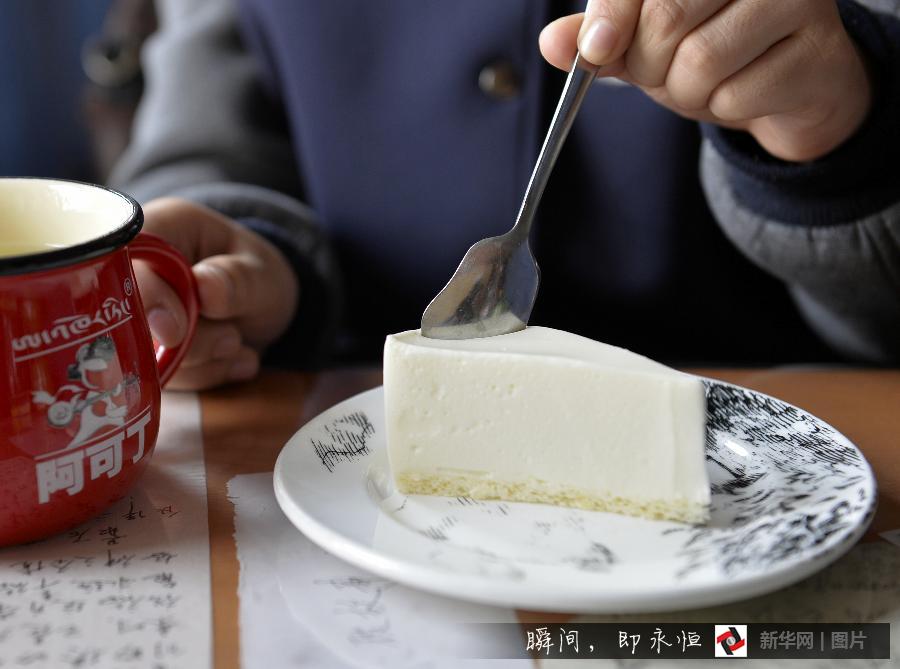 Yoghourt cake of “Akeding Tibetan Bakery”. (Photo/Xinhua)