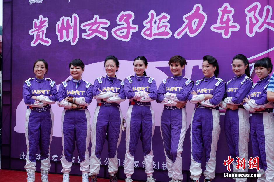 The first women rally team of Guizhou celebrates its first anniversary in the street of Guiyang, southwest China's Guizhou province on July 29, 2015. The rally team currently is the only team totally composed by female riders in China. 12 riders and their cars attracted much attention in the street. (CNS/He Junyi)