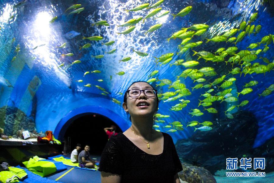 A ocean theme event was held in Tianjin Polar Aquarium on Aug. 1, 2015. Many tourists spent a magical night with all the marine creatures.