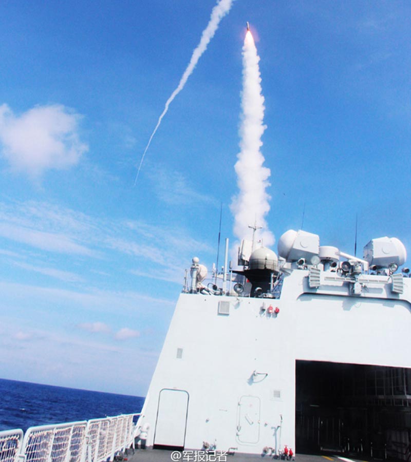 A destroyer branch of the PLA Navy’s South China Sea Fleet conducts live fire exercise recently, firing dozens of guided missiles and torpedoes. (Photo/official website of PLA Daily)