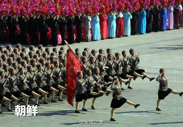 Female soldiers with exaggerated moves — North Korea.(Photo/Weibo)