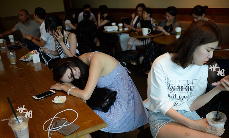 Ye Xin fall asleep at a café after first rehearsal. (China. com.cn/ Lai Xinlin)
