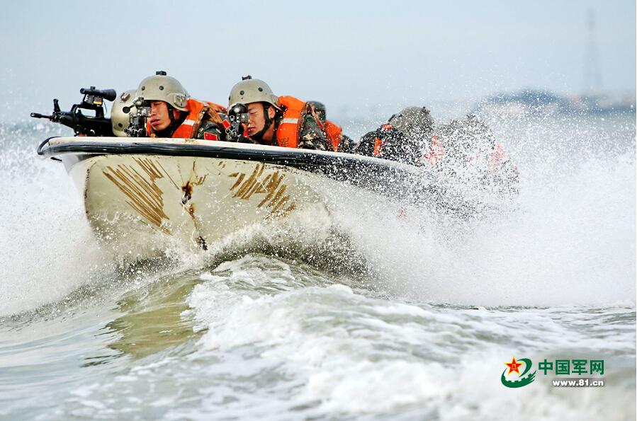 A group of photos show the PLA's devil fighting training in water. (Photo/81.cn)