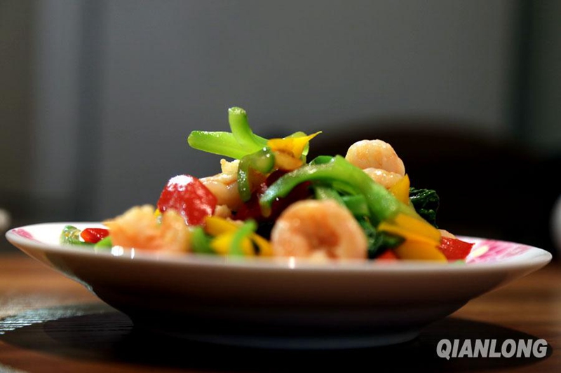 Zhao cooks shrimps with vegetables for the client. (Qianlong/ Yu Ying)