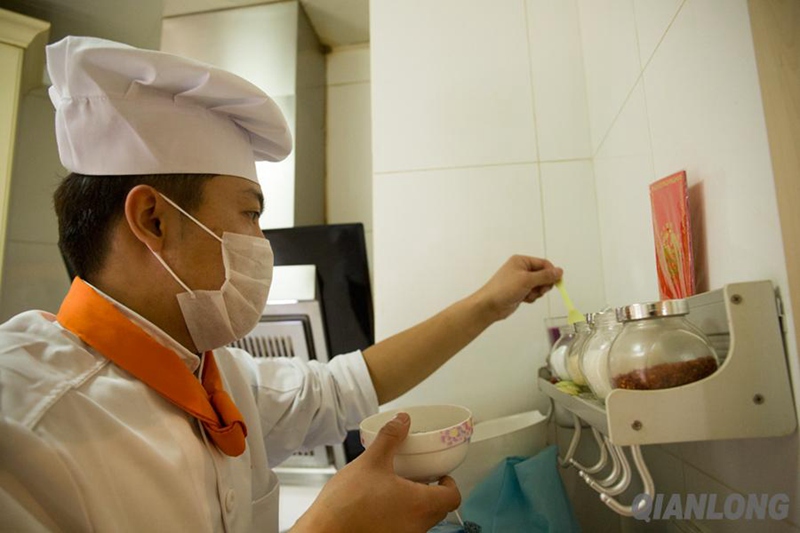 Zhao seasons the dishes. (Qianlong/ Yu Ying)