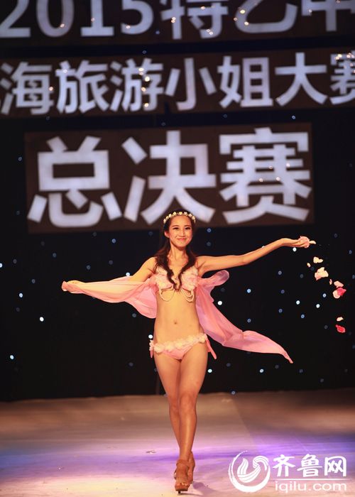 The final of 2015 Miss Weihai Tourism concludes on Aug. 2, 2015, with 20 charming contestants competing for the title. Xu Qian, from Weihai Art School, won the championship. (Photo/iqilu.com)