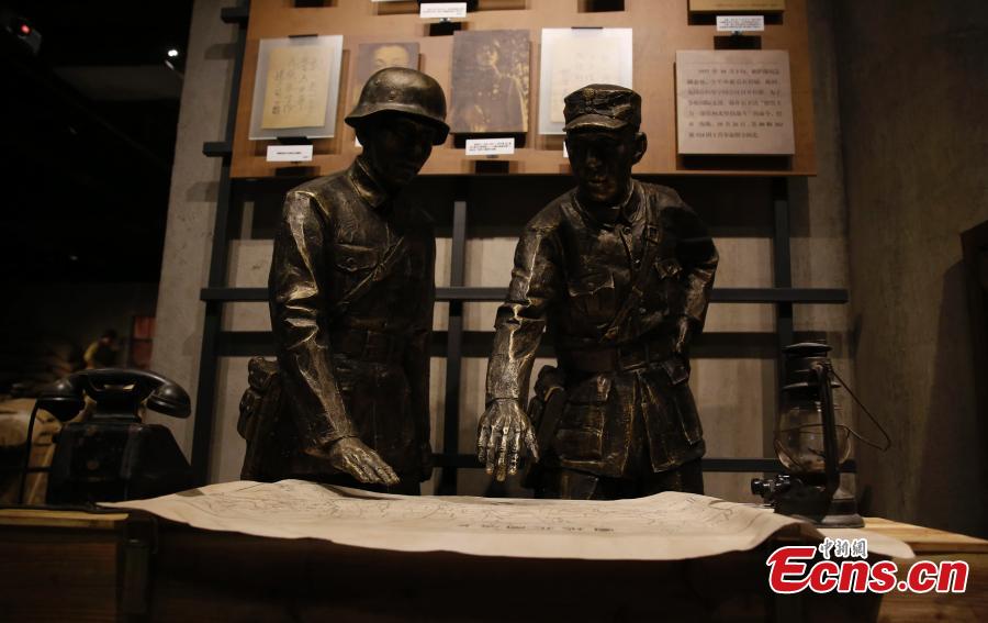| Sculptures demonstrate scenes from the defense of Sihang Warehouse in 1937 at a memorial site in Shanghai, Aug 5, 2015. |