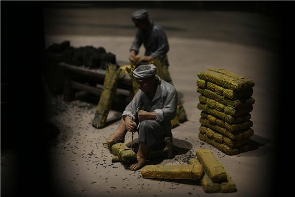 An artwork on display in the Yaan Museum shows how dark tea was packed in bamboo holders. Most of us think Pu’er when thinking of dark tea, but a visit to Yaan in Southwest China's Sichuan province will surely put a surprise on their faces. (Photo: chinadaily.com.cn/Jiang Wanjuan)