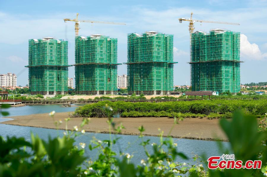New residential buildings circle a protected mangrove wetland in Chengmai county, South China’s Hainan province, Aug 5, 2015.