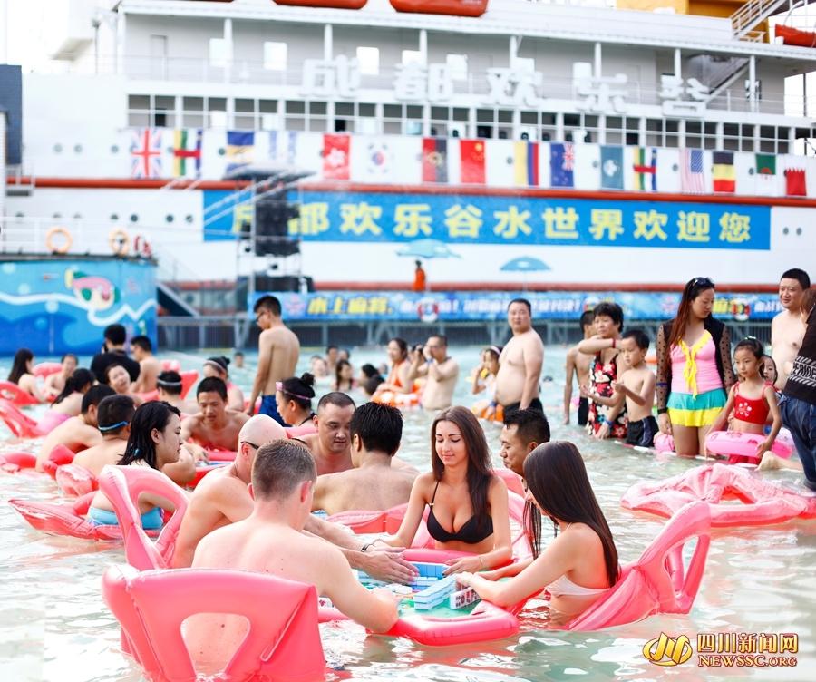 Foreign ladies wearing bikini "do as Chengdu people do" - participating in a mahjong competition held in a water park in Chengdu on Aug. 1, 2015.