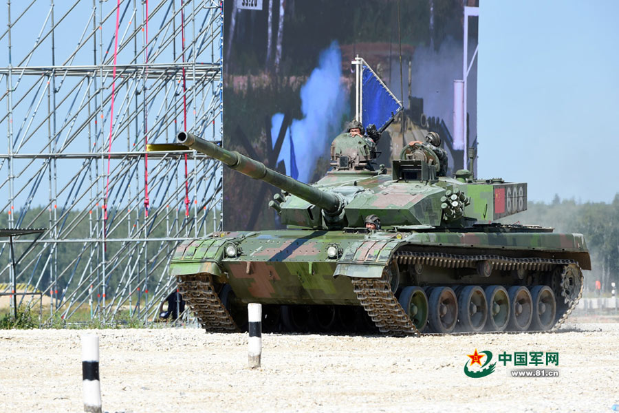 The individual race of the "Tank biathlon" contest kicked off on Aug. 3 at the Alabino training range in Moscow Region, which was held in the course of the Russian International Army Games 2015. The type 96A tanks of the Chinese People's Liberation Army team participated in the race. (Photo/www.81.cn)