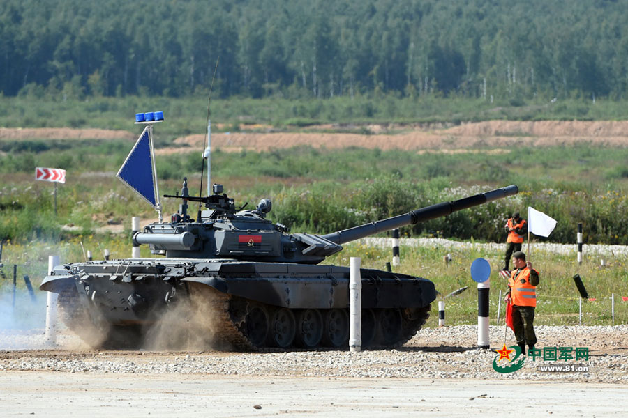 The individual race of the "Tank biathlon" contest kicked off on Aug. 3 at the Alabino training range in Moscow Region, which was held in the course of the Russian International Army Games 2015. The type 96A tanks of the Chinese People's Liberation Army team participated in the race. (Photo/www.81.cn)