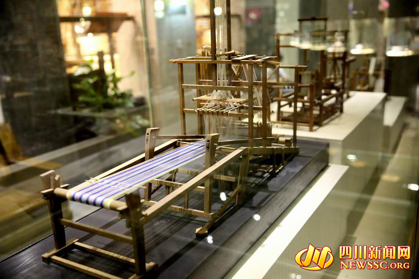 Inheritors of Sichuan brocade handcraft show visitors the whole process of making the brocade on the traditional weaving machine in Sichuan Brocade Museum on Aug. 3, 2015. One of the weaving machines they use is passed down from Qing Dynasty (1636-1912). (Photo/NEWSSC.ORG)