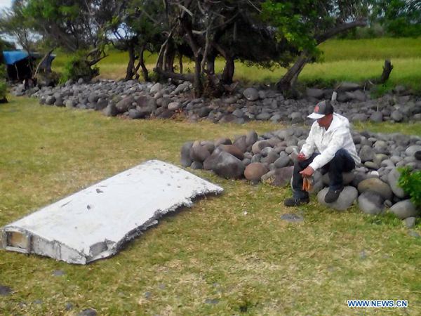 Photo taken on Jul.29, 2015, shows a piece of debris on Reunion Island. Verification had confirmed that the debris discovered on Reunion Island belongs to missing Malaysian Airlines flight MH370, Malaysian Prime Minister Najib Razak announced early Thursday. (Xinhua/Fabrice Avanande)