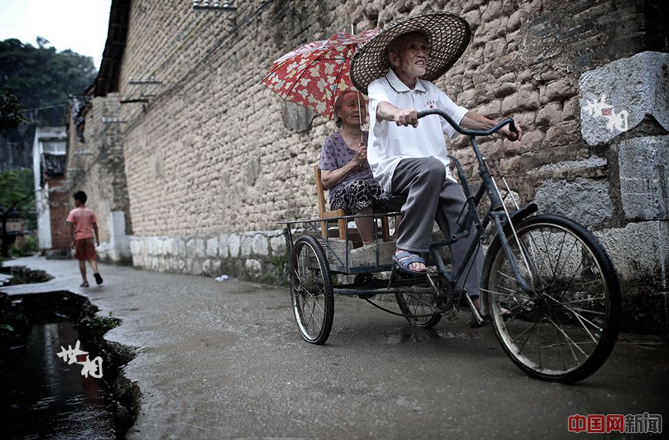 Qin Qiurong takes Qin Suansao to the market with a tricycle. (China.com.cn/Liu Jiaoqing)