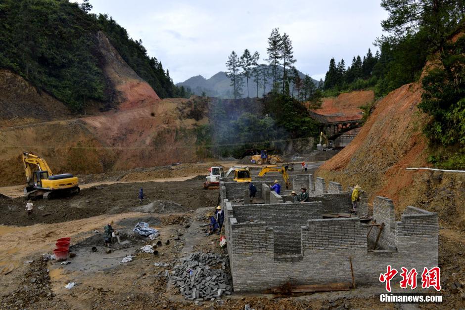 An bullring, covering an area of more than 20,000 square meters, is being built in Rongjiang county, southwest China's Guizhou province on August 7th, 2015. It is the largest bullring for 72 Dong stockaded villages and is built to carry forward traditional Dong bullfight culture. The bullring is said to be able to accommodate 50,000 people and will be put into use this September. (Photo/CNS)
