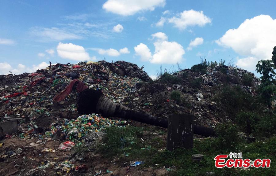 Garbage piles up at a site in Jinshan town of Wenchang city, South China’s Hainan province, Aug 6, 2015. The garbage has been left there for more than 20 years without being processed, rising to meters in height and emitting a terrible smell. Viewed from the air, it looks like a giant scar in a field of green plants. (Photo: China News Service/Wang Xiaobin)