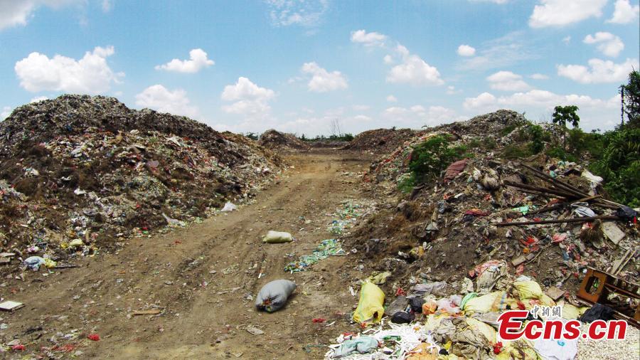 Garbage piles up at a site in Jinshan town of Wenchang city, South China’s Hainan province, Aug 6, 2015. The garbage has been left there for more than 20 years without being processed, rising to meters in height and emitting a terrible smell. Viewed from the air, it looks like a giant scar in a field of green plants. (Photo: China News Service/Wang Xiaobin)