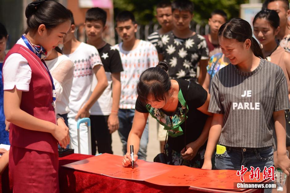 A red carpet ceremony is held in a college in Chengdu, southwest China's Sichuan province to welcome the freshmen on Aug. 5 to 6. "To hold such a ceremony is to give the college freshmen confidence and encouragement. We hope they will treasure the university life," said the president of the college. (CNS/Zhong Xin)