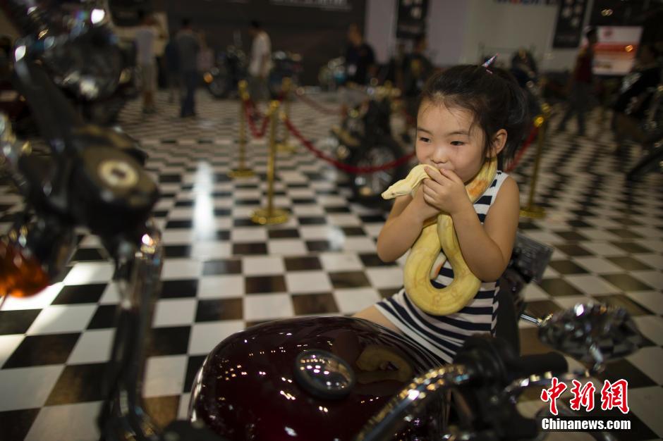 A girl playing with a patteraless acts as a guest car model (Photo from Chinanews)
