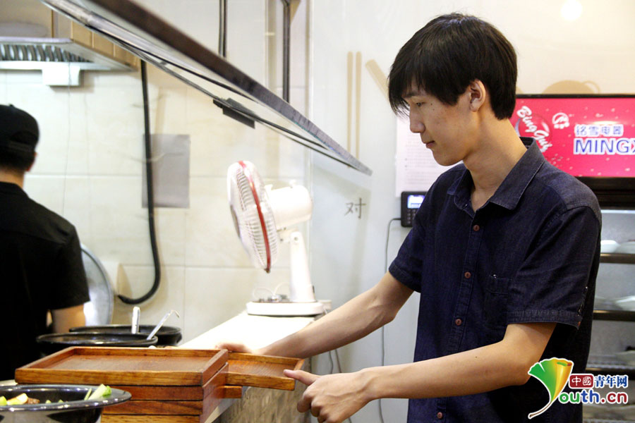 Zhao Heng's cooking skill of Chongqing noodles is excellent. (Youth.cn/Wang Jing)