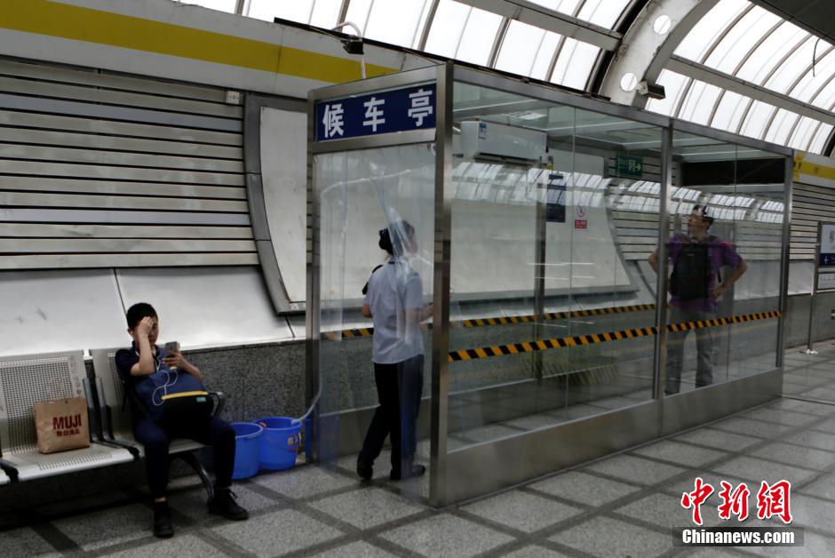 Passengers wait inside the booth equipped with an air conditioner at Liufang station in line 13. (Photo from Chinanews)